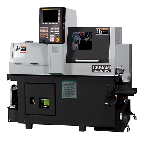 B0208W采用3系統同時控制,各刀臺獨立控制,實現正背面同時進行的多樣化加工;3系統控制,換刀時間零化;3刀臺搭載Y軸,背軸側Y軸,可以實現更高附加值零件的加工;軟件方式熱變補償,實現高精度加工。