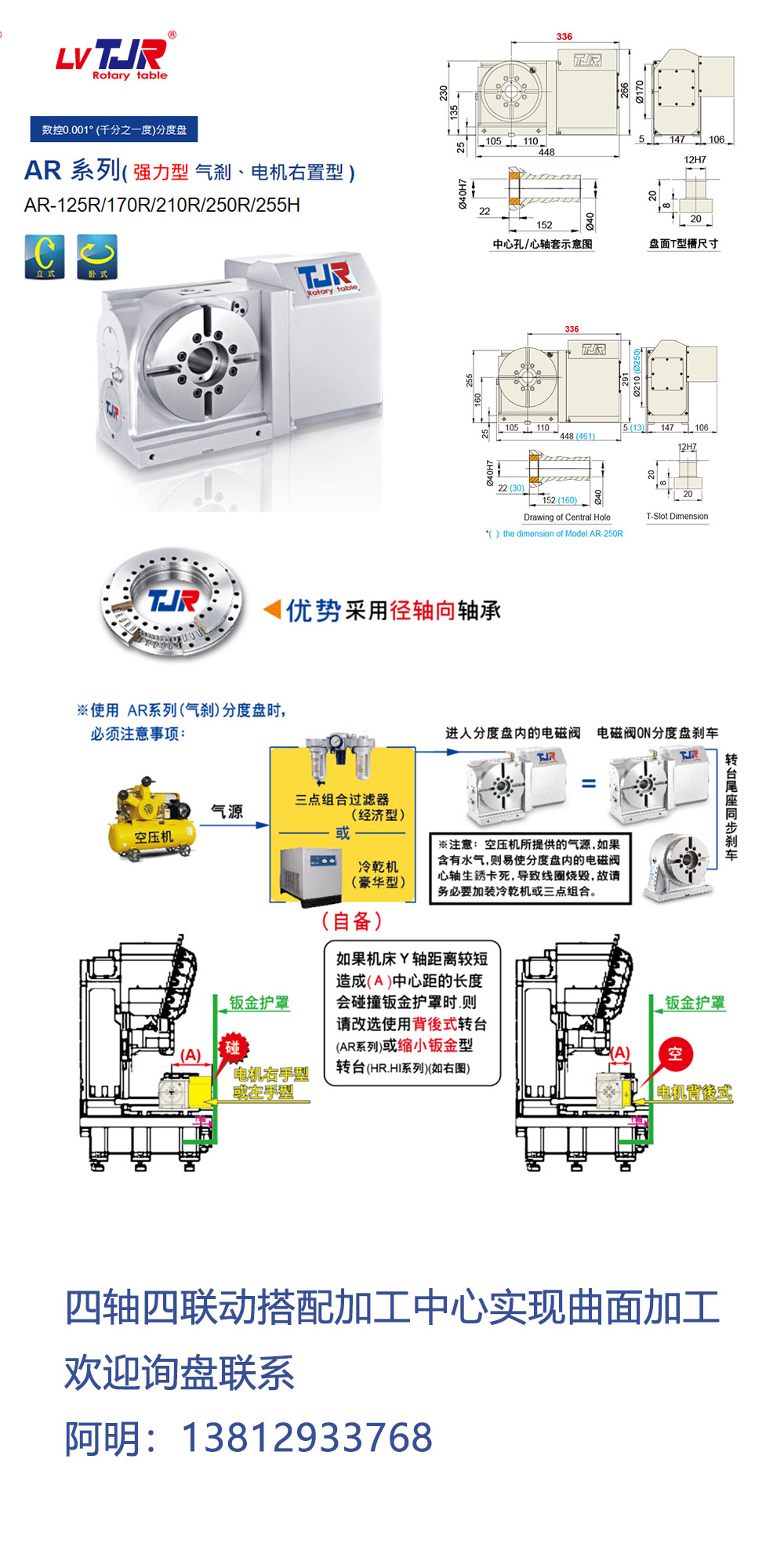 臺灣譚佳數控分度頭轉臺轉臺氣動第四軸數控分度盤伺服AR170R250R