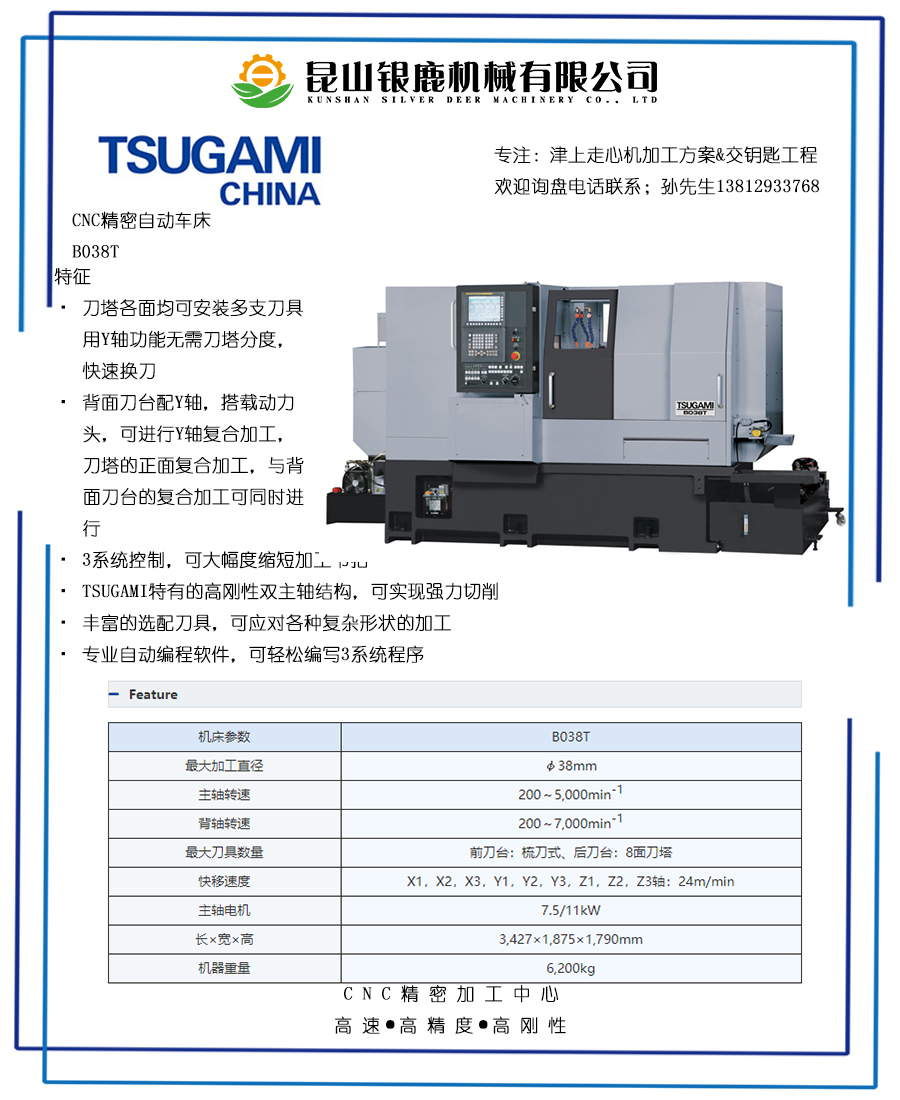 津上B038T高剛性全自動數控車床走心機一級代理大直徑縱切車床。