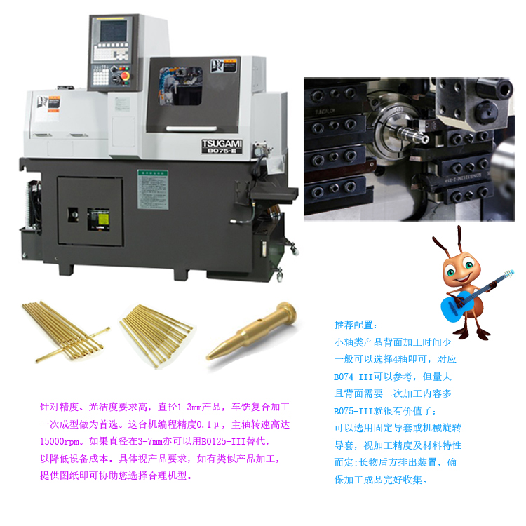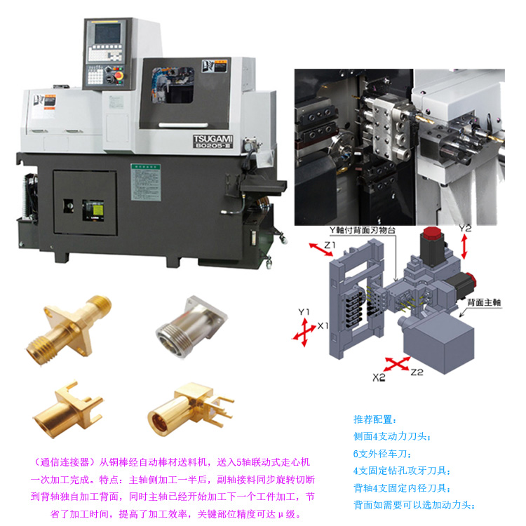 通信五金,光學五金高速高精加工走心機銷售,專業提供津上走心機加工方案及交鑰匙工程。例如高頻天線、探針等細微小軸加工、需要車銑復合加工精密小零件,以及光學五金鏡筒等零件一次送料自動棒材加工方案整合提供,亦可提供交鑰匙工程服務。具體視加工產品會有專門對策,如果你在找電子通信方面的五金加工設備,請及時與我們聯系,我們將第一時間安排拜訪、推動產品落地生產。